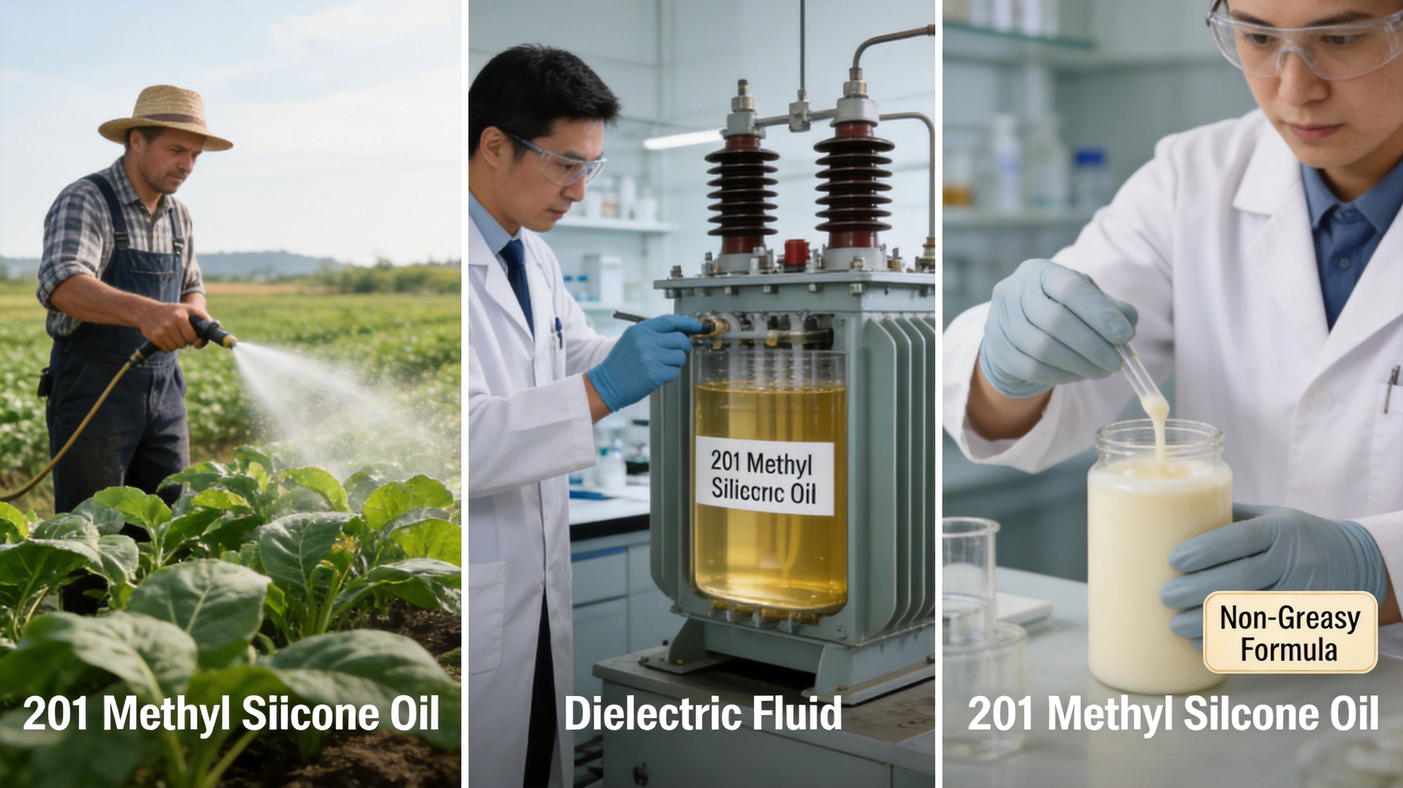 201 Methyl Silicone Oil is used to modify the surface properties of various materials: - Agriculture: It is added to agricultural sprays to improve wetting and spreading on plant leaves. The low surface tension of the oil allows the spray to cover more surface area, increasing the deposition of active ingredients and reducing runoff. - Textiles: It is used in textile finishing to enhance softness, antistatic properties, and water resistance. The oil forms a thin hydrophobic layer on the fabric, making it resistant to water while maintaining breathability. - Cosmetics: It is added to lotions, creams, and hair products to improve texture, smoothness, and water resistance. Its physiological inertness makes it safe for skin contact.