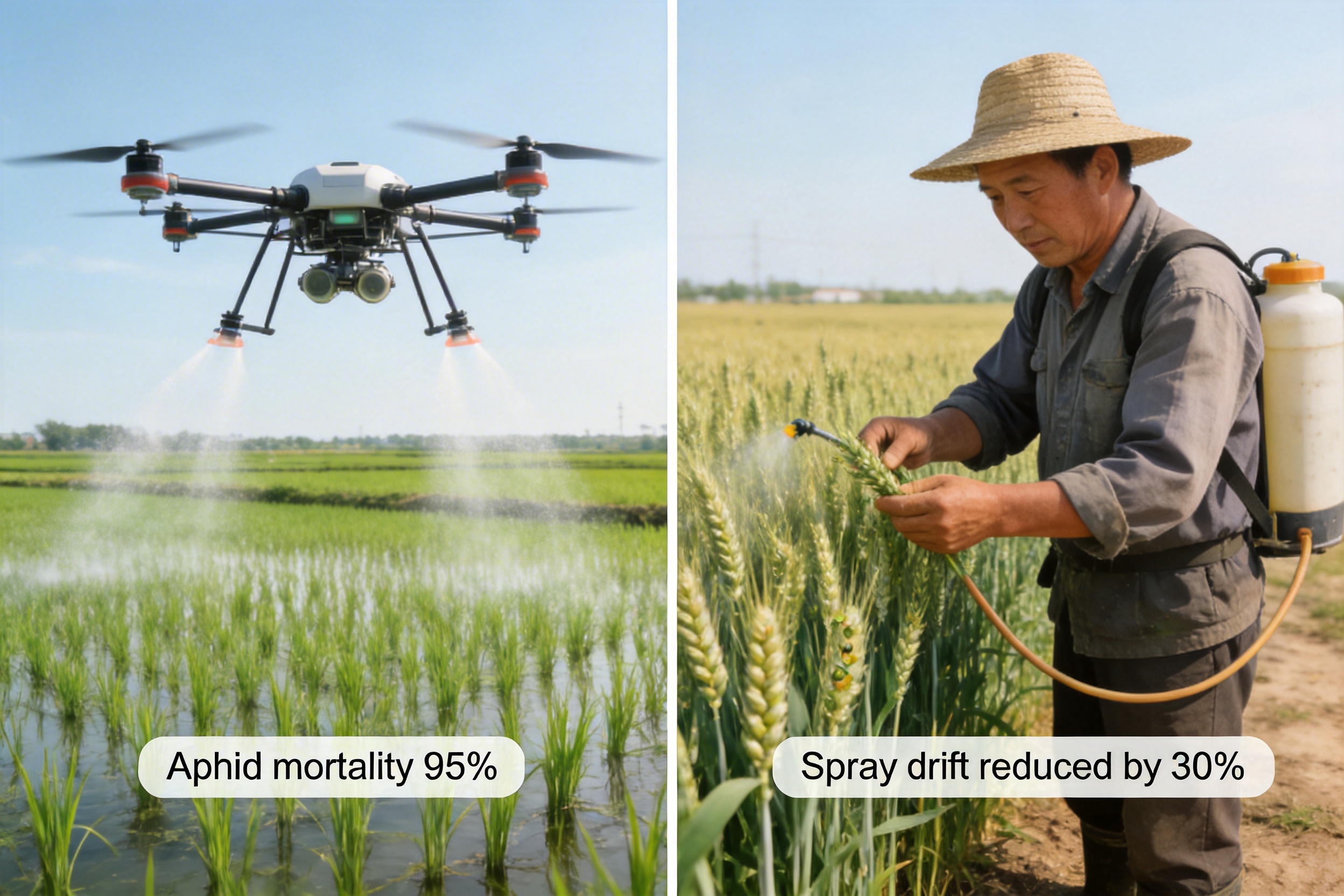 A wheat farmer in Hebei Province tested the GT-9200 adjuvant with a pyrethroid insecticide for aphid control. The farmer divided his 50-hectare field into two parts: one treated with the adjuvant and pesticide, and the other with pesticide alone (full dosage). The results were:
